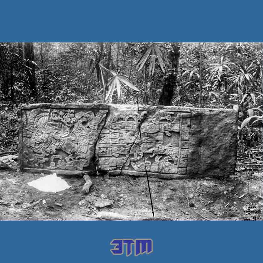 Этот текст – единственное значимое упоминание о конце Длинного счета, которое когда-либо было найдено, – так и не был полностью понят, отчасти потому, что некоторые глифы сильно истерлись. Однако оставшиеся цифры упоминают возвращение Болона Йокте, бога майя, связанного с войной и созиданием.
