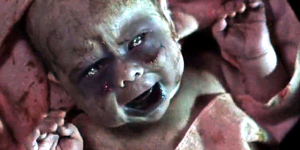 Злые младенцы иногда играют лишь незначительную роль в фильмах, но все же им удается оставить сильное впечатление. Ребенок в фильме о зомби Рассвет мертвецов хороший тому пример. Когда зомби кусает беременную женщину, женщина превращается в зомби, а затем рожает ребенка-зомби. Это не единственный случай появления ребенка-зомби в кино. Еще один такой случай произошел в британском недооцененном фильме ужасов 2012 года Кокни против зомби (2012). В обоих случаях ребенок-зомби не является одним из главных героев, но все равно выглядит так же страшно, как и остальные зомби, независимо от их возраста. Наконец, у ребенка-зомби было немного больше экранного времени в фильме Питера Джексона 1992 года. Живой мертвец в котором у зомби также есть ребенок-зомби.