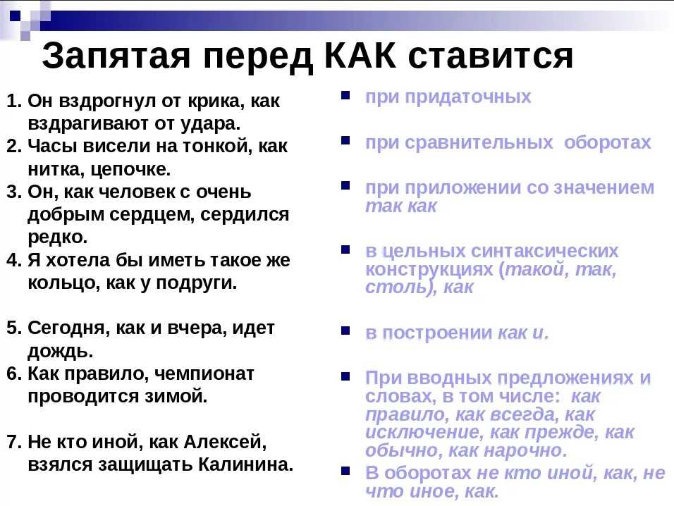 Запятую перед союзом «как» нужно ставить в основном в следующих случаях: