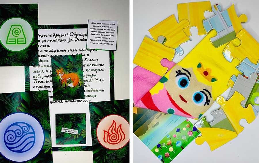 Ребят ждут головоломки и шарады, представленные необычным реквизитом: тут и деревянный лабиринт с замочком, и водяная «бомбочка», которую так интересно взрывать, и ультрафиолетовая ручка, и таинственный фонарик. Все это детям нужно будет использовать, чтобы освободить от коварного злого волшебника Дух Леса, веселого Рыжего Лиса.