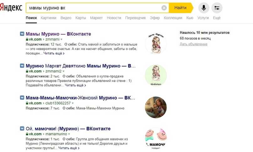 1. Ищем группы (Через яндекс поиск, через парсер). Ключевые слова для поиска Мамы Ваш город район, Ваш город/район. Записываем группы в таблицу.
