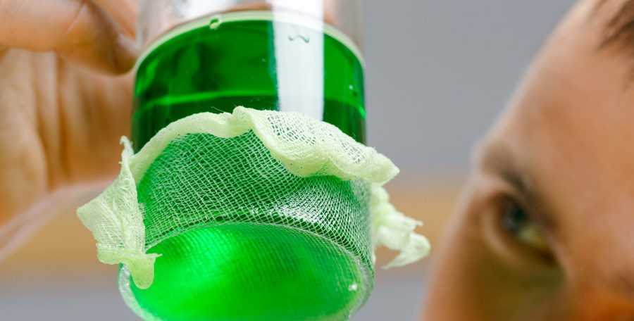 Так создается пленка поверхностного натяжения, которая из-за небольшого размера отверстий в бинте не рвется под тяжестью жидкости.