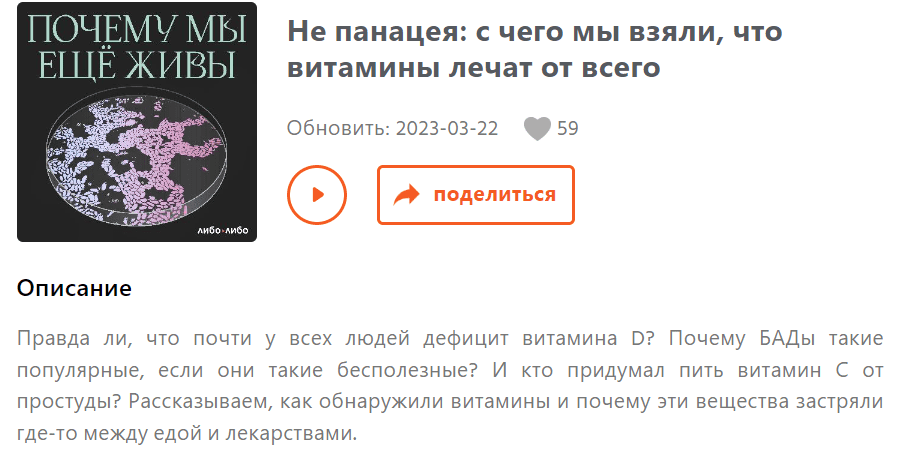 Подкаст от студии «Либо/Либо» о медицинских открытиях. Ведущий — педиатр Фёдор Катасонов. Он рассказывает о том, как люди учились лечить болезни, откуда взялись антибиотики, антидепрессанты и анестезия и почему современная медицина не может победить все всё.