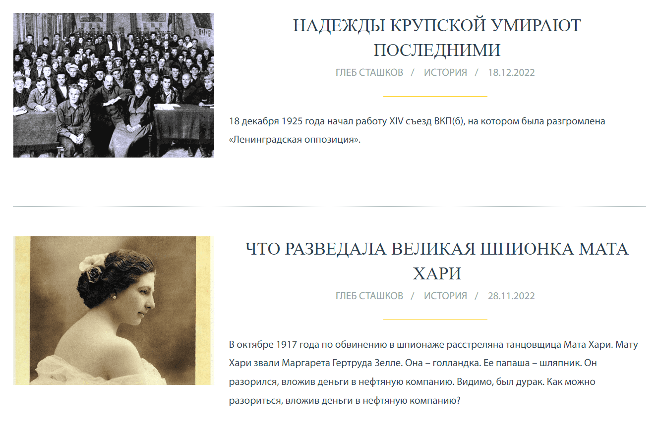 Сайт с короткими историческими материалами о том, что обычно остаётся за пределами учебных программ. Судьбы личностей, детали картин и сооружений, неординарные теории и другие нюансы отечественной и зарубежной истории. Помимо прочего, в разделе тестов можно проверить свои знания или выяснить, как бы сложилась ваша жизнь в иной исторический период.