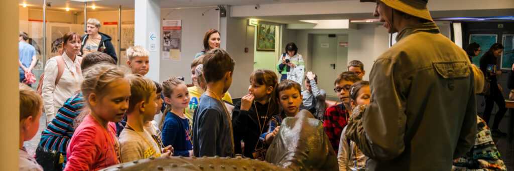 Изучать экспонаты вместе с гидом гораздо интереснее, чем в одиночку. Но если взрослый способен выдержать полноценную экскурсию, которая может длиться больше часа, то для ребёнка в любом возрасте это будет тяжким испытанием. Для семей с детьми экскурсоводы обычно предлагают облегчённые экскурсии с интерактивными элементами. Знакомство с экспонатами не будет длится больше 30-40 минут. Зачастую время варьируется в зависимости от возрастных и индивидуальных особенностей детей. После экскурсии гид может предложить детям и родителям сделать небольшой сувенир на память.