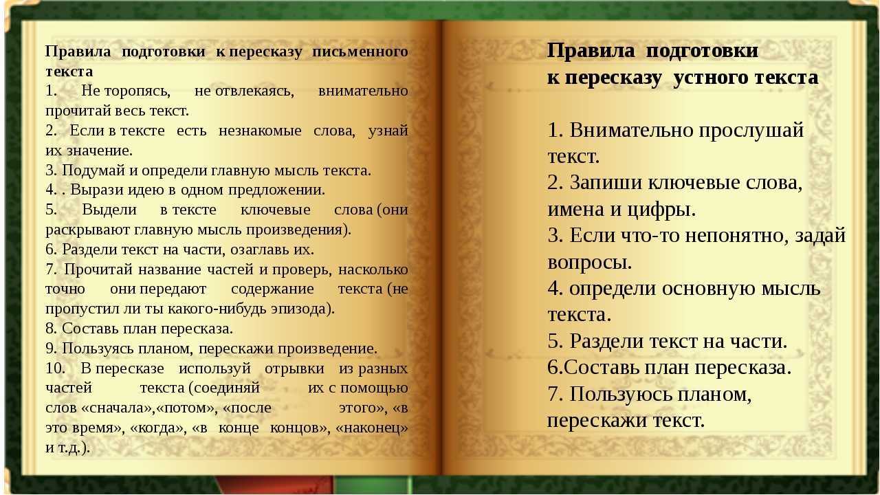Чтобы научиться пересказу, необходимо обучиться работе с текстом.