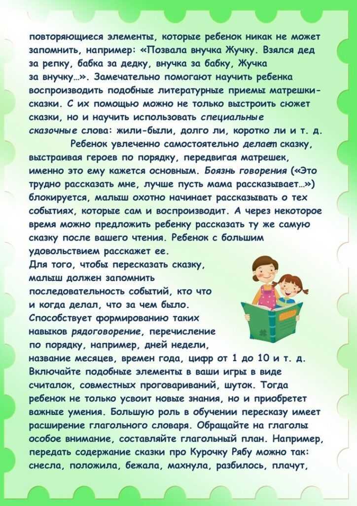 Запаситесь терпением, каждый индивидуален в своем развитии — кому-то пересказ дается легко, а кому-то требуется немного больше времени на освоение этого умения.