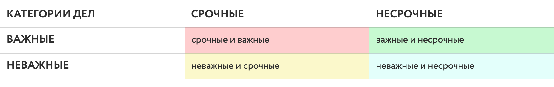 Расставьте приоритеты, пользуясь матрицей Эйзенхауэра: