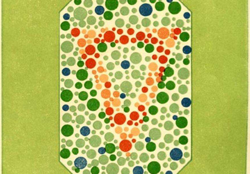 В этих таблицах есть еще и фигуры-ловушки. Например, человек с нормальным цветовосприятием видит 9, а дальтоник — 5, или кружок. Видят их только дальтоники с определенным видом дальтонизма, врач по своим таблицам сможет определить, какого именно пигмента не хватает на сетчатке.