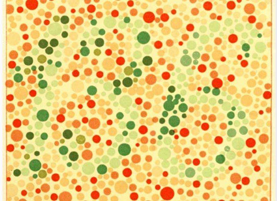 - карточка 12. Здесь просматривается число «12», но страдающие невосприятием красного цвета этого не увидят;