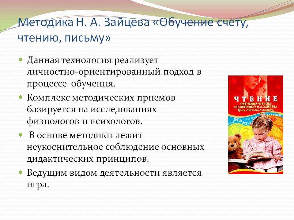 В основе методики, предложенной Зайцевым, лежат склады. От привычных нам слогов их отличает то, что склад состоит всегда из одной или двух букв (звуков) — согласной и гласной, согласной и мягкого или твердого знака. Они проще для восприятия, нежели слоги.