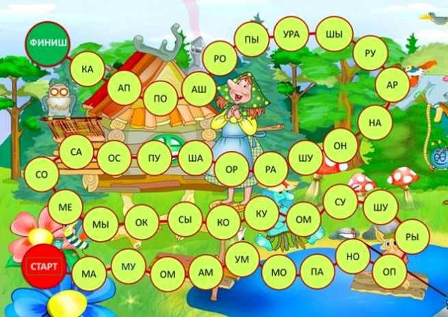 «Бродилки» были и остаются одними из самых увлекательных игр для детей. Чтобы смастерить такую игру со слогами, возьмите игровое поле от любой настольной игры. Впишите в пустые клеточки/кружочки различные слоги (вписывайте больше тех, которые ребёнку даются с трудом). Затем играйте по обычным правилам: кидайте кубик и идите по клеточкам, читая, что на них написано. Так ребёнок сможет читать достаточно длинные дорожки со слогами, которые он «одолел» бы в обычном букваре с большим трудом.