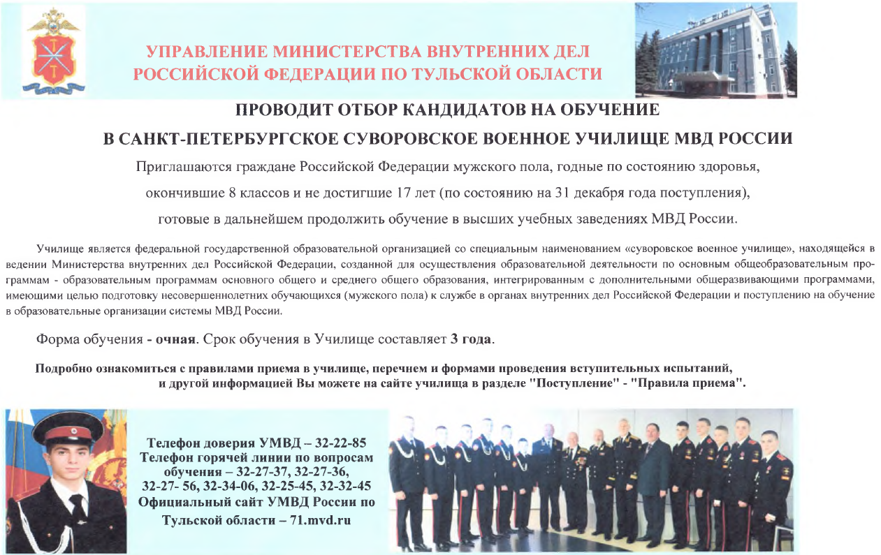 - Обучение проводится в мужской среде, поэтому девочкам поступление в Суворовское училище не предоставляется.