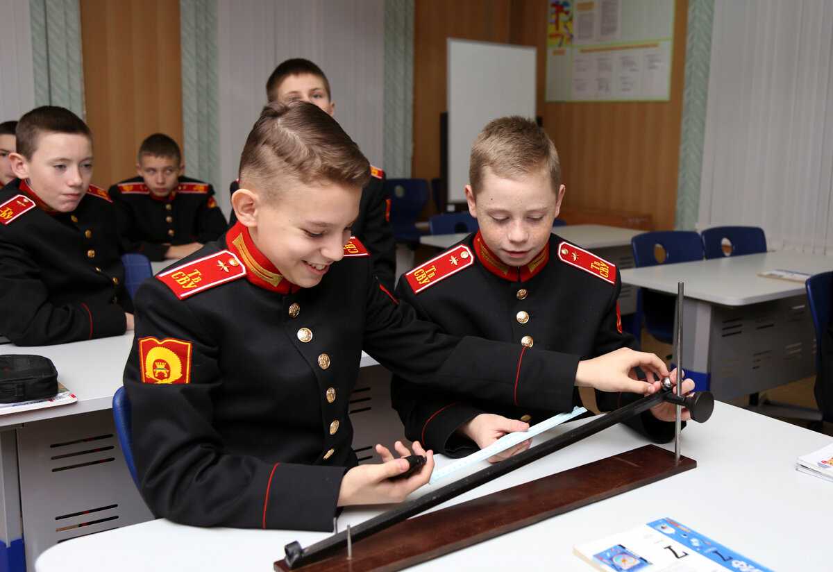 - Ученики обучаются не только предметам общего образования, но и получают знания в области военного дела и тактики.