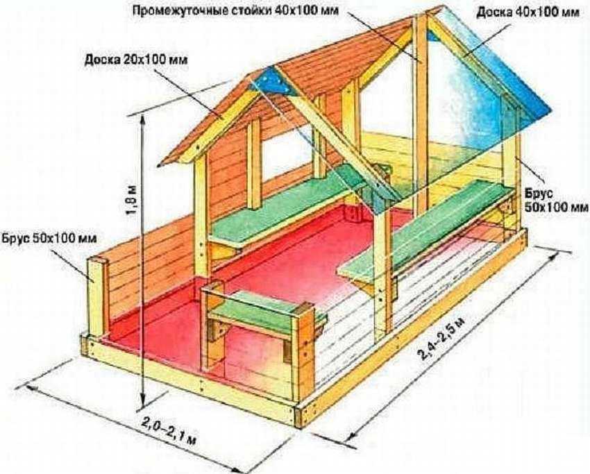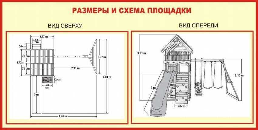- Игровая зона не должна граничить с постройками на участке, такими как беседка, баня или забор.