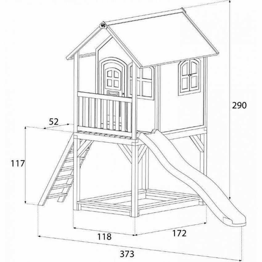 Подробная схема площадки с большим домиком, качелями и горкой.