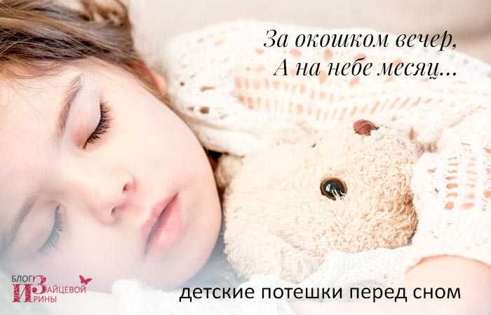 Бывает порой, что малыша невозможно уложить спать: не может успокоиться, что-то беспокоит, сильно устал и не может уснуть. В таком случае, на помощь тоже придут потешки: «Бай, баюшки, баю…», «Глазки, зайка, закрывай», «Ай, бай, бай, бай, ты, собачка, не лай…». Ребенок привыкнет к словам и станет быстрее засыпать.