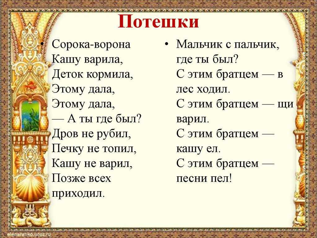 Потешки развивают внимание, речь, память, знакомят ребенка с разными сторонами жизни, учат доброте, сочувствию, взаимопониманию. Если статья понравилась, пожалуйста, поделитесь ссылкой на нее
