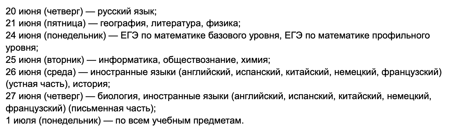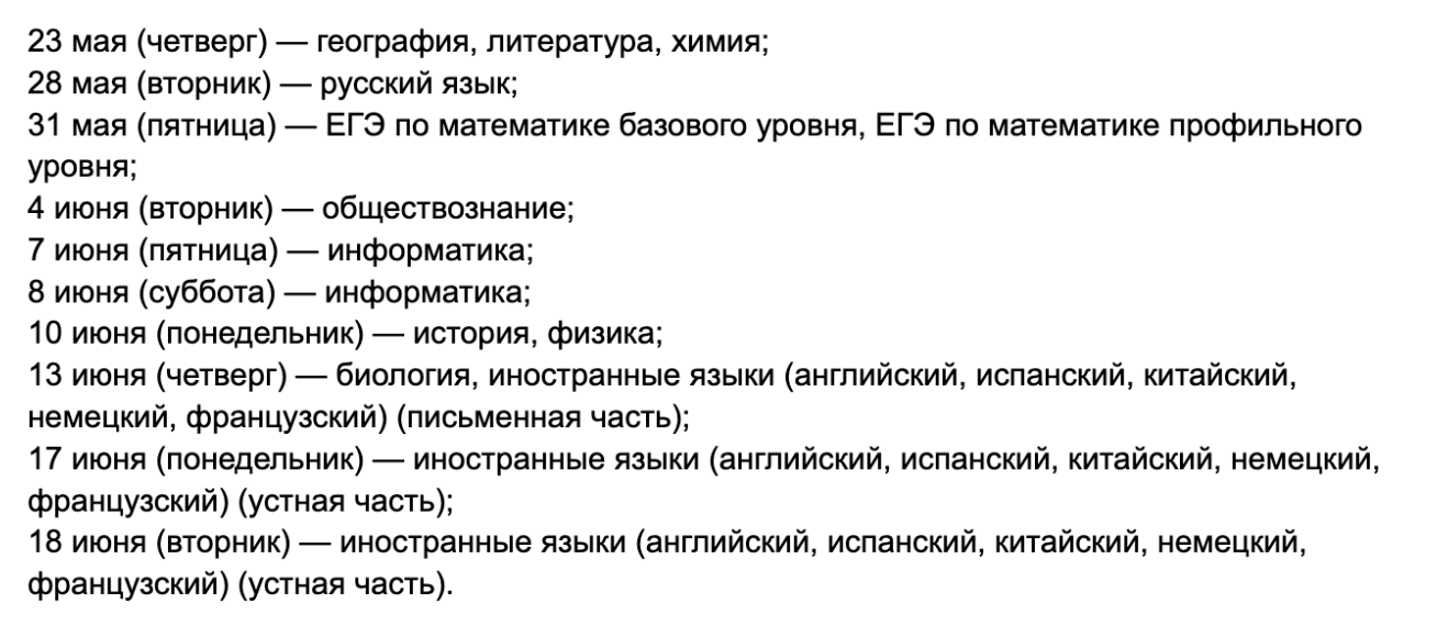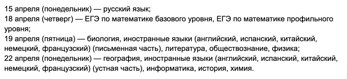 - 23 сентября (понедельник) — ЕГЭ по математике базового уровня, русский язык.