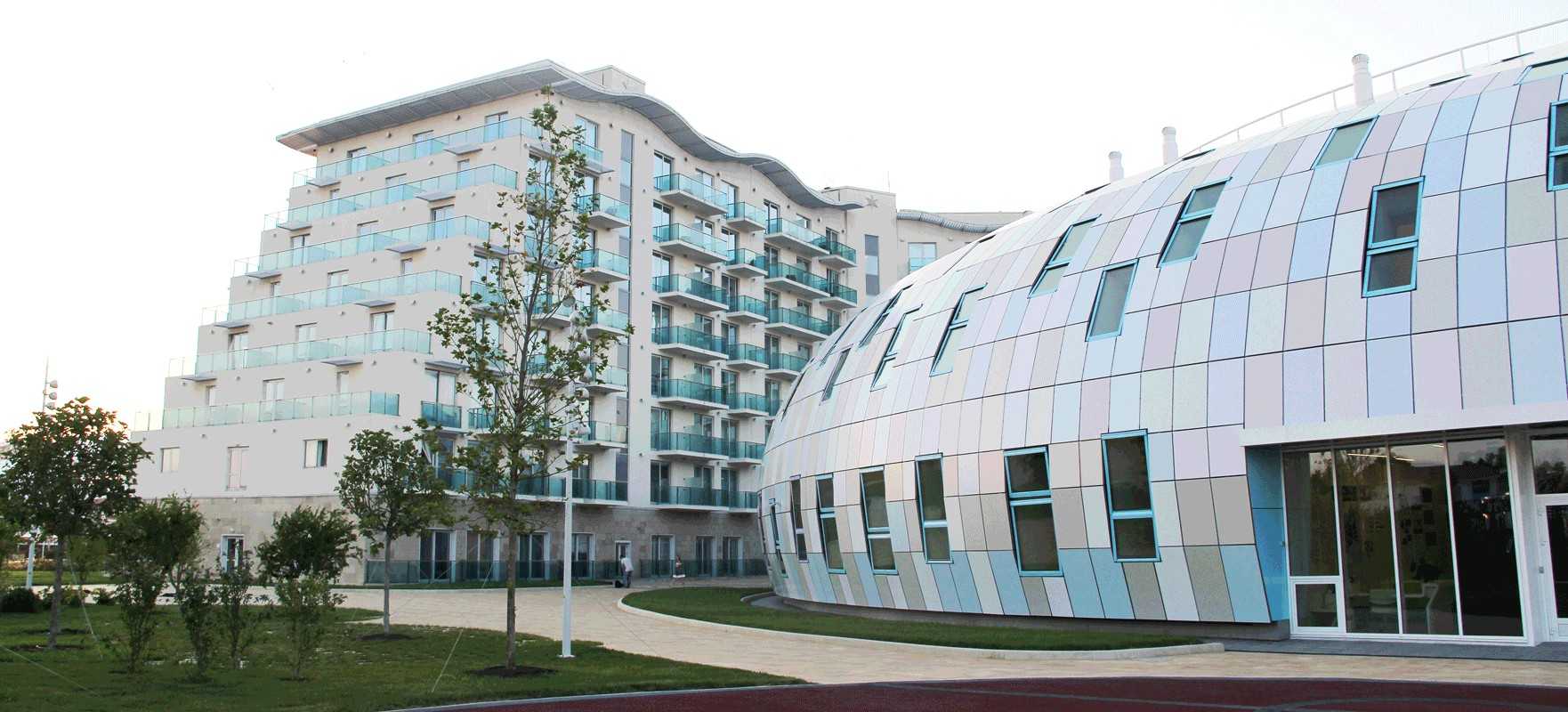 - Общая площадь комплекса образовательных учреждений: ок. 30000 м²