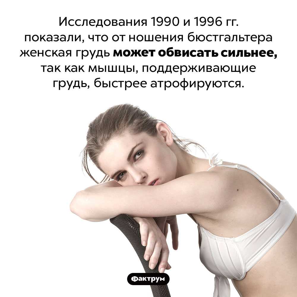 Поэтому поддерживать прежнюю форму для организма делается невозможно. Кстати, бонусный совет: если хочешь, чтобы грудь дольше оставалась упругой — реже носи лифчик. Без его мышцы лучше тренируются поддерживать тонус.