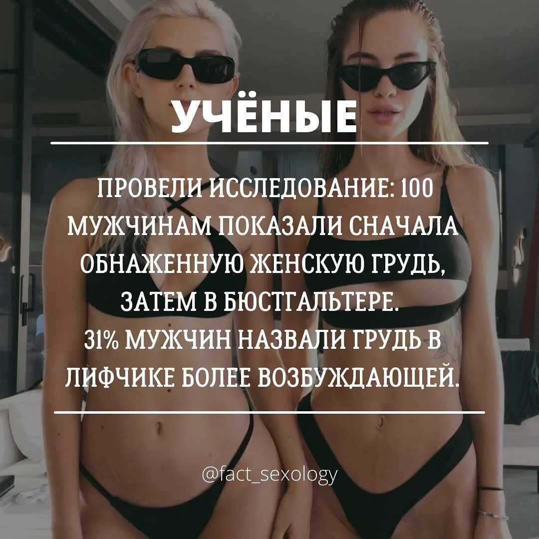 Американские эксперты пришли к заключению, что при созерцании женской груди или даже обычного нижнего белья, мужчины начинают теряться и принимают далеко не самые верные решения. Так, в ходе эксперимента участникам мужского пола, разделенным на две группы, исследователи предлагали два варианта получения денежного вознаграждения: или небольшая сумма давалась сразу после просмотра определенного видеосюжета, или же более крупная — но только через некоторое время. Большинство мужчин, которые входили в группу, наблюдавшую за женскими прелестями, предпочли первый вариант. А вот те, кто смотрел не столь соблазнительные фильмы, решили подождать, но получить побольше.