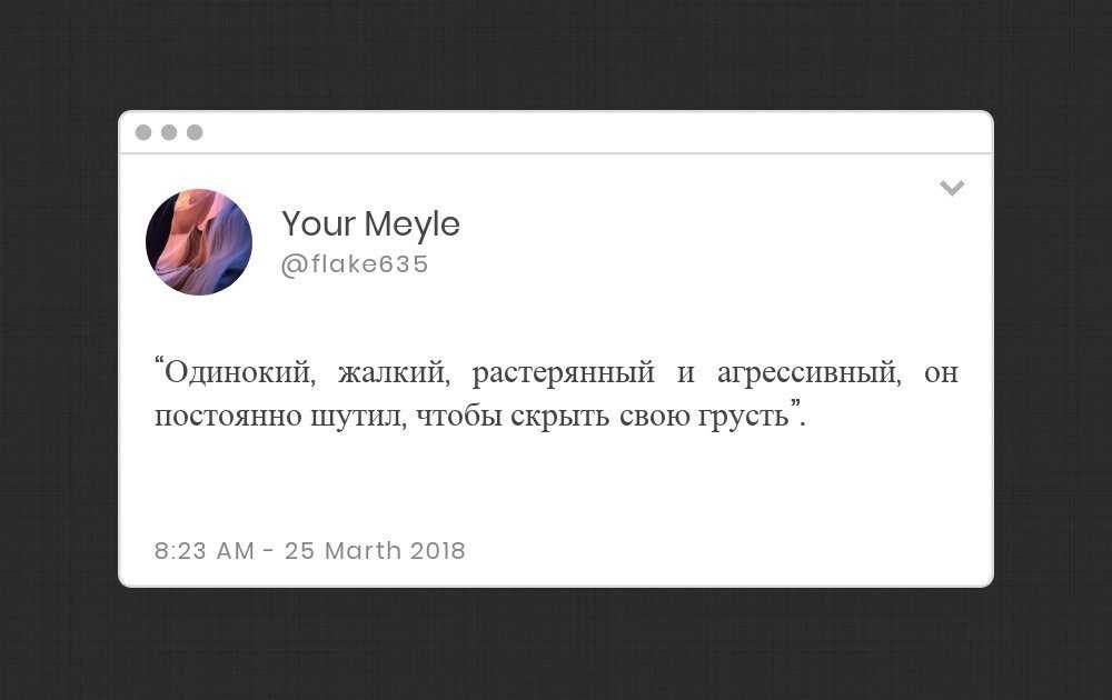 - изолировал сам себя от общества, не интересуется повседневными мелочами;