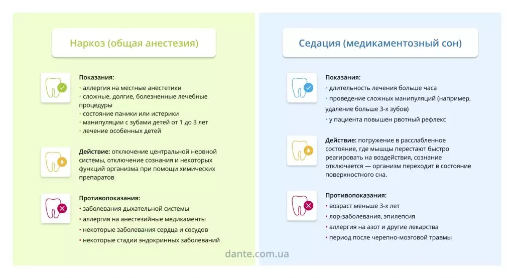 В стоматологии наркоз используется только в тех случаях, когда нельзя обойтись местной анестезией или седацией: