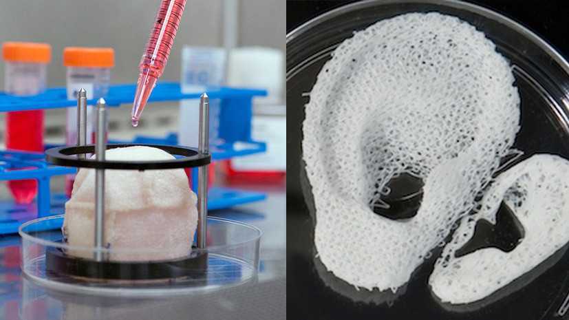- Каркасы мочевого пузыря и ушных раковин, выполненные с помощью технологии 3D-печати