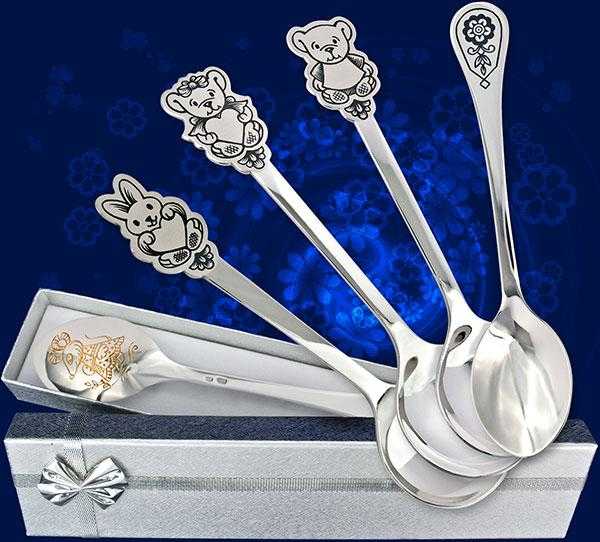 Не надо торопить события и сразу покупать своему ребёнку столовую серебряную ложку, которой он начнёт пользоваться в лучшем случае после трёх лет. Если позволяют средства или количество желающих подарить серебряную ложку больше двух, то рекомендуем собрать комплект из минимум двух ложек. Это кофейная и чайная серебряные ложки.