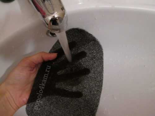 Угольный фильтр грязным не выглядел и я не стала его трогать. Сеточка явно полипропиленовая. Видно, сколько грязи на ней скопилось. Я промыла ее под проточной водой безо всяких опасений. Стряхнула и положила сушиться.