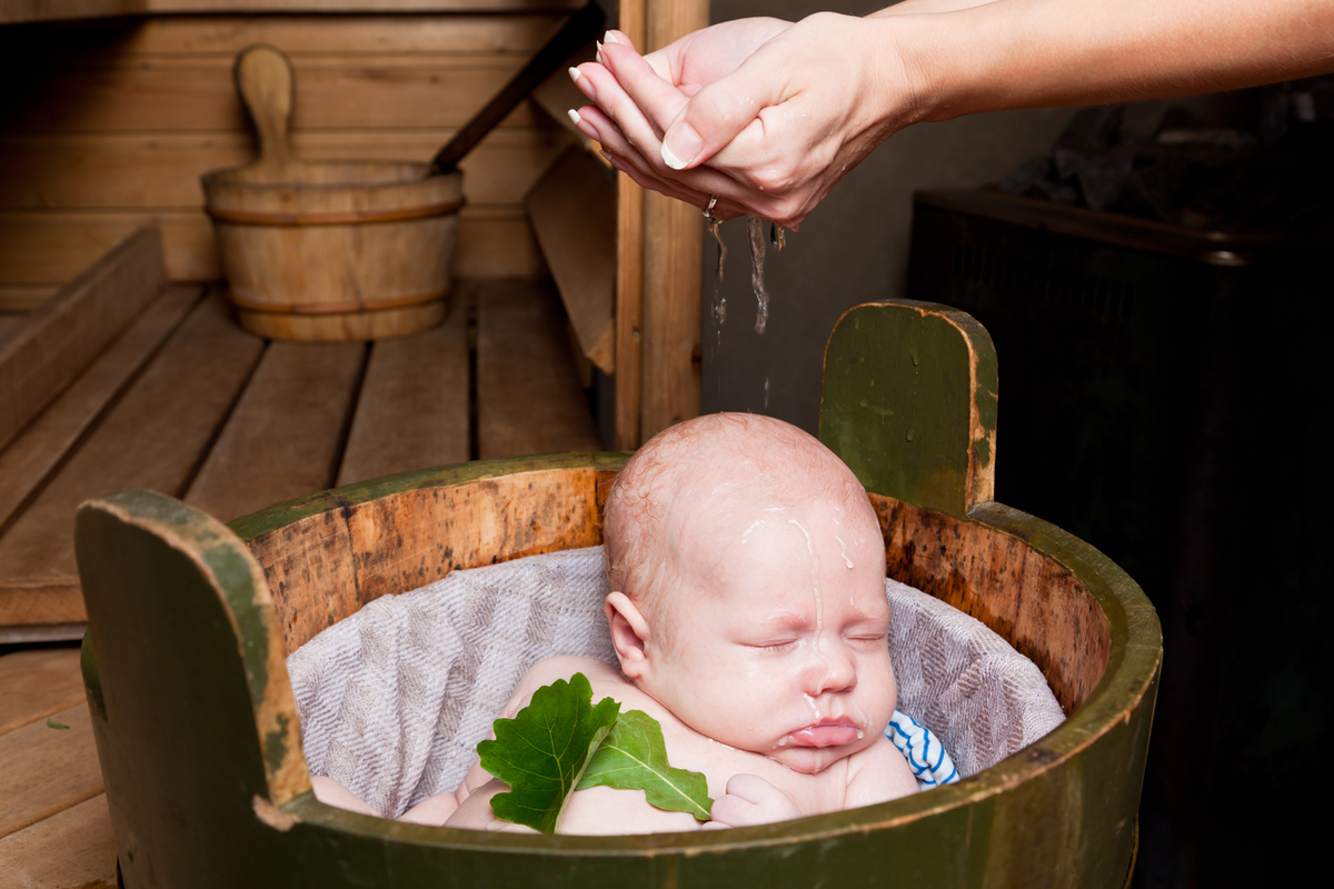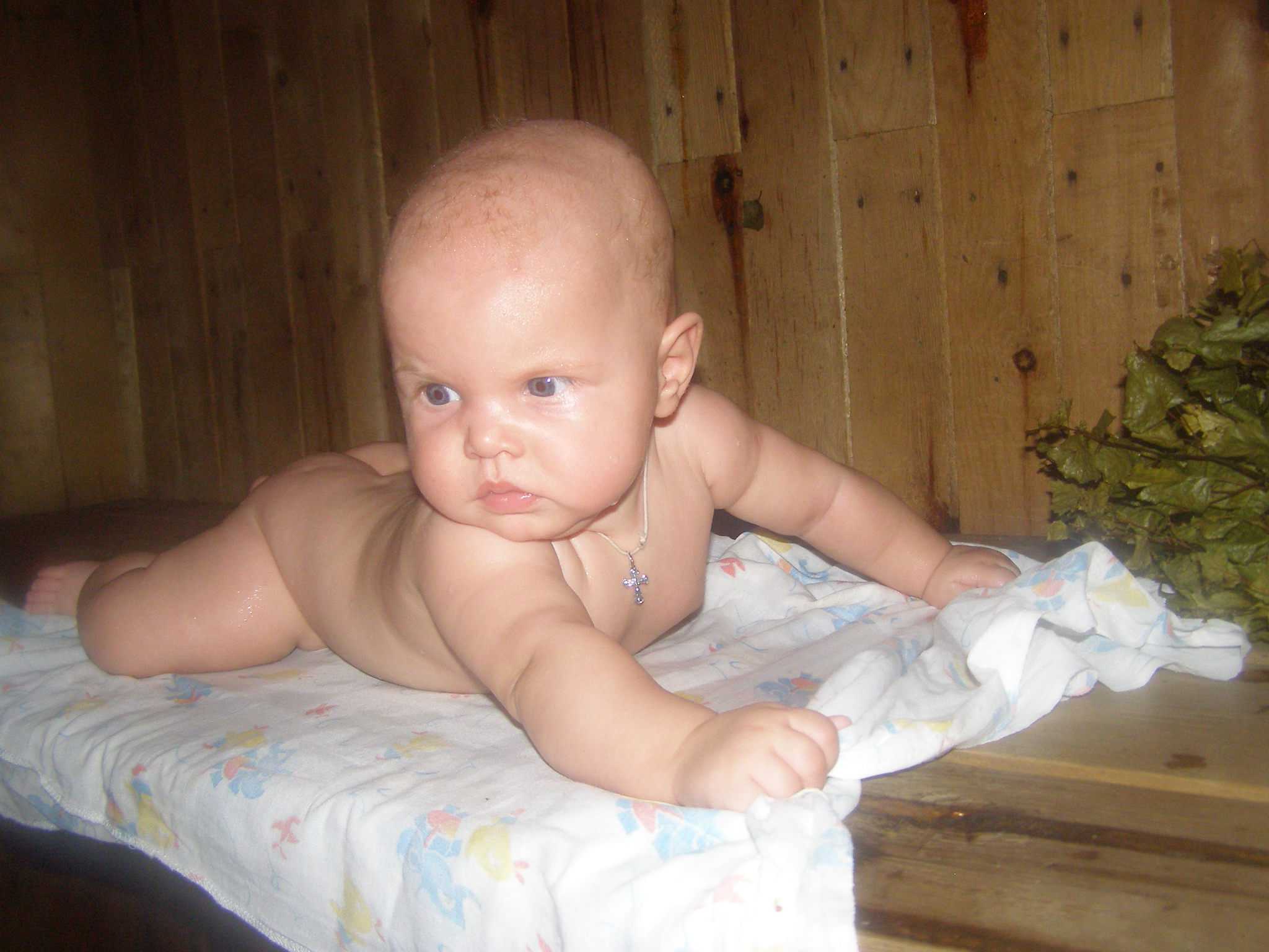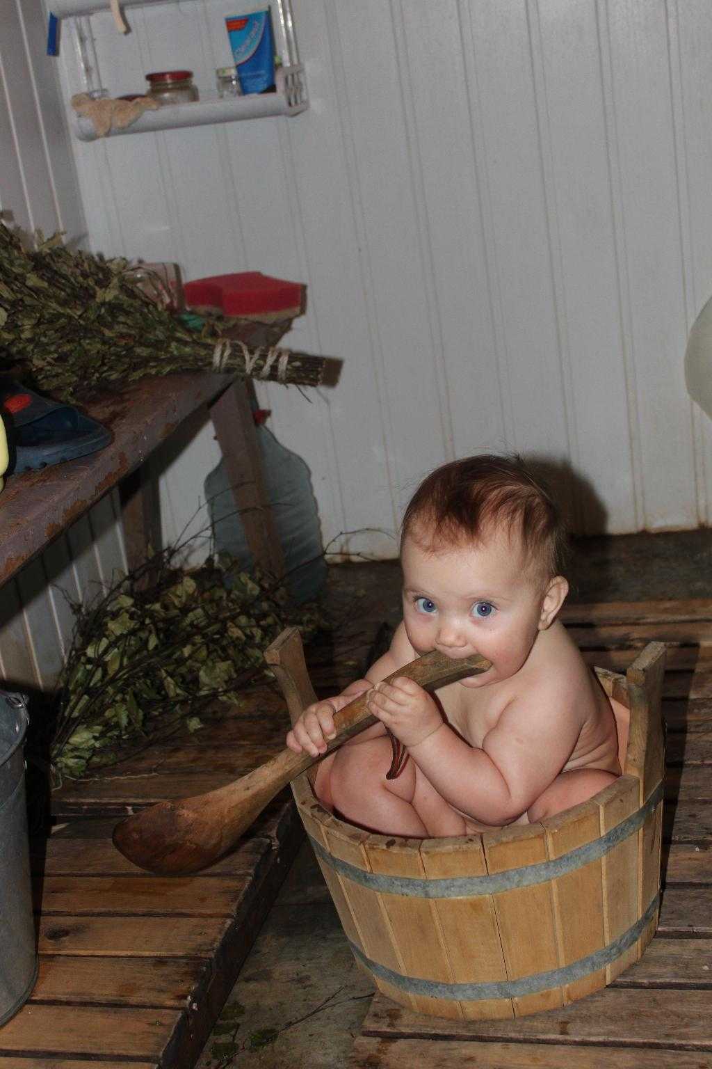 На вопросы «с каких лет детям можно в баню», «можно ли двухмесячному ребенку в баню» или «когда можно водить в баню новорожденного», педиатры отвечают, что следует подождать, пока малышу исполнится хотя бы 8 месяцев, а в идеале — 7 лет. Детский организм работает по другим физиологическим законам: интенсивнее, чем у взрослых идут процессы метаболизма, больше вырабатывается тепла в единицу времени. Кроме того, еще не развиты потовые железы, а значит механизмы поддержания адекватной температуры тела менее эффективны. Поэтому температура окружающей среды (в данном случае в бане), приятная родителям, для крохи может быть не только не комфортной, но и опасной.