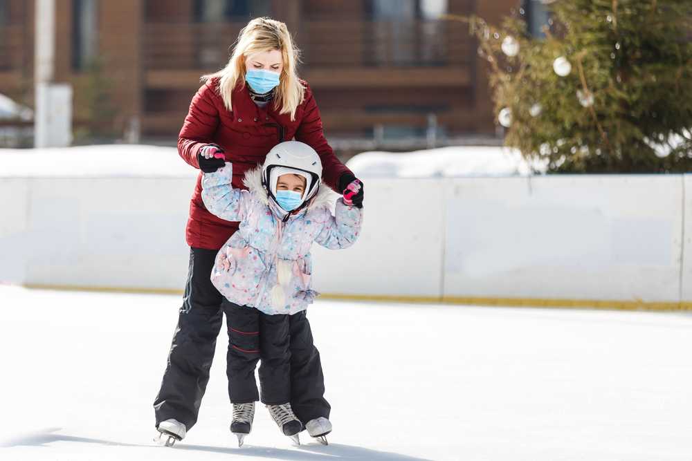 - если вы сомневаетесь, есть ли у катка скамейки, возьмите с собой коврик, например, из пенополиуретана. На него можно сесть для надевания и снятия коньков. Не забудьте и о запасных варежках. Дети катаются на коньках сначала неуверенно, часто падают, и первые рукавички непременно успеют насквозь промокнуть от снега.