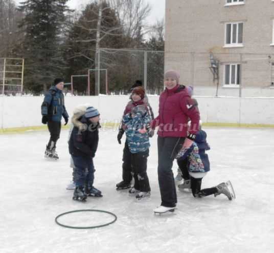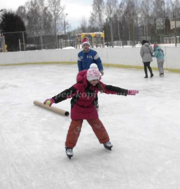 Для этой игры понадобятся пластиковые бутылки или другие предметы, которые нужно расставить на льду. Игроки встают по росту, кладут друг другу руки на плечи и едут змейкой. Задача игроков – обогнуть все предметы, не сбив ни одного.