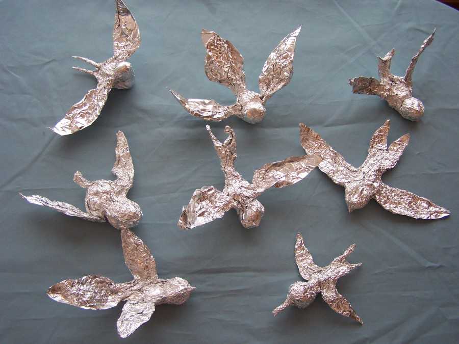 Чтобы изготовить поделку нужно сделать шарик из пенопласта, взять толстую проволоку и тейп-ленту. Понадобятся ножницы и акварельные краски. Шар делится пополам или оставляется целым. Полученные заготовки следует раскрасить в необходимый цвет.
