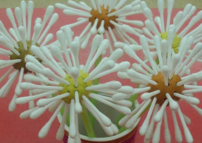 Прекрасный букет из этих цветков в декорированной вазочке украсит детскую комнату. А поможет вам наш мастер класс поделок из ватных палочек.
