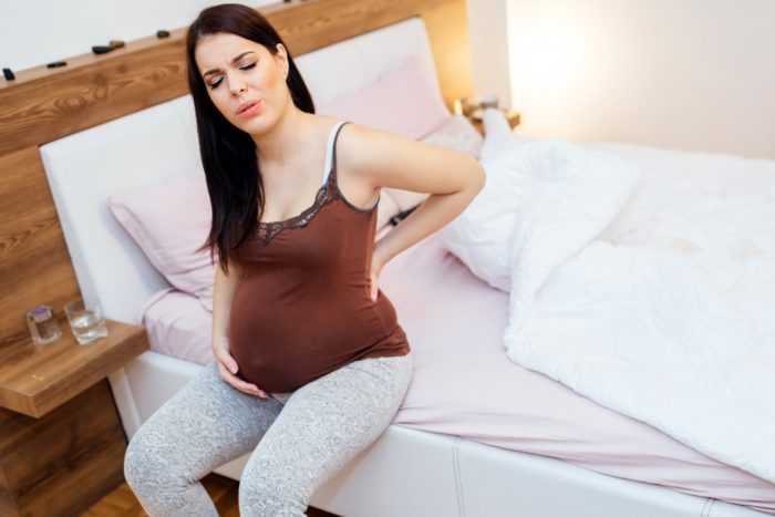 Особых изменений, кроме усиливающейся боли в спине, в состоянии беременной мамочки не наблюдается.