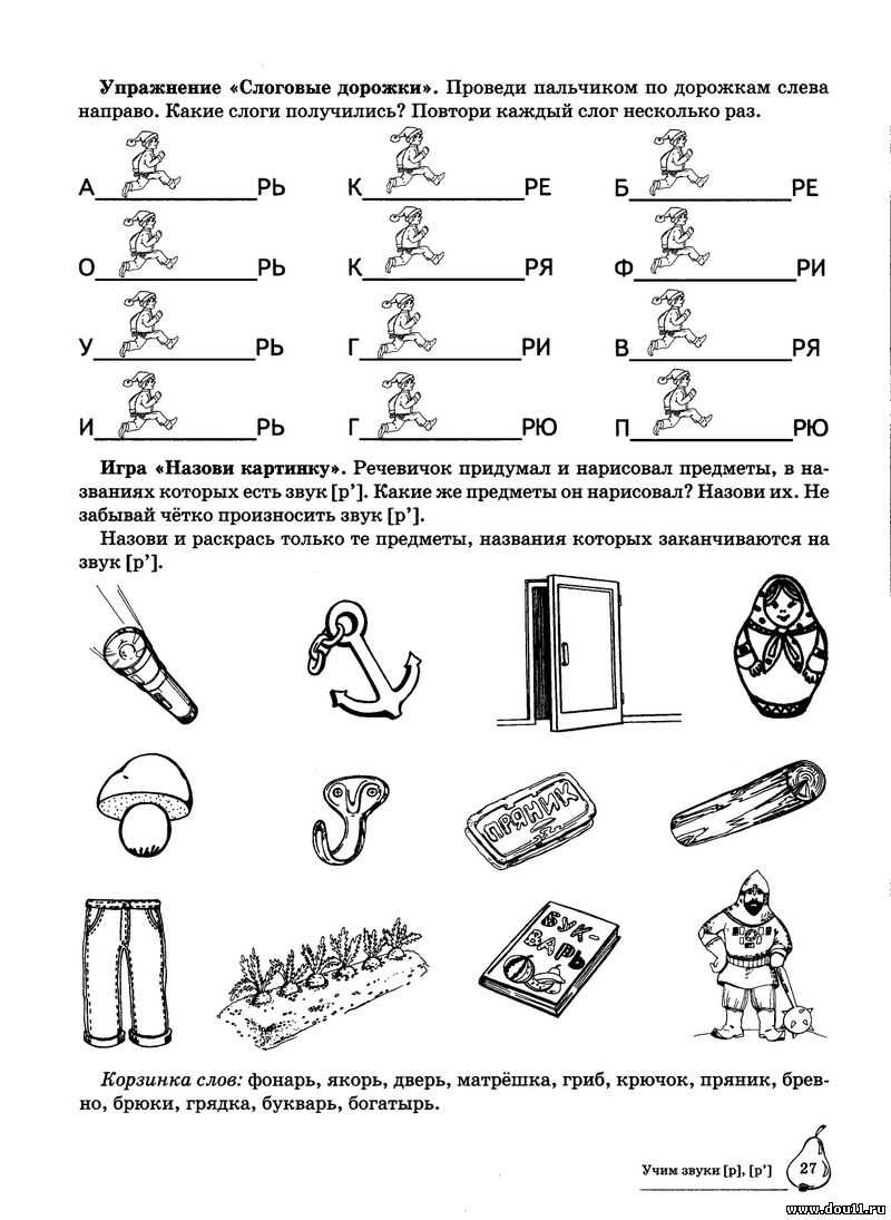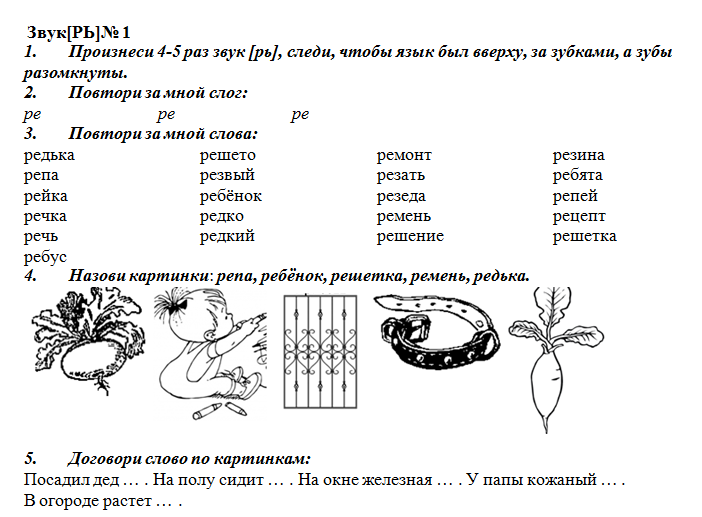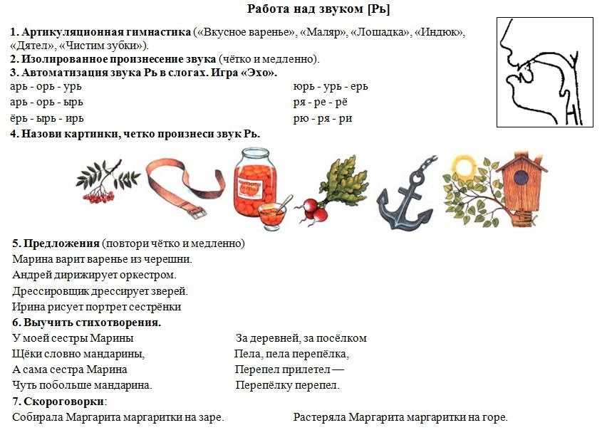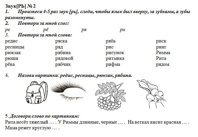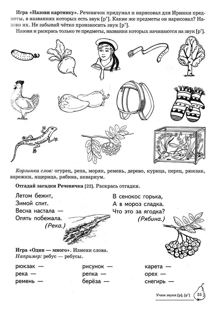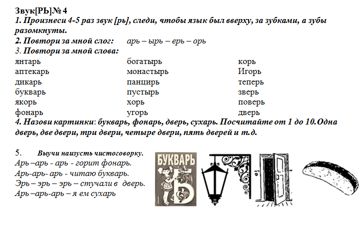 Необходимо следить, чтобы ребенок произносил «р» и «рь» правильно.