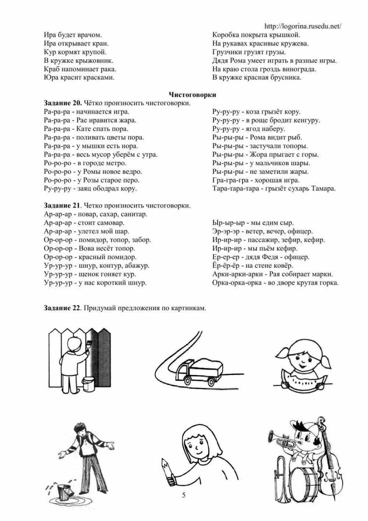 Позже можно подобрать более сложные слоги: бра, тра, дро, вры, утр и прочие. К ним также необходимо подобрать чистоговорки.