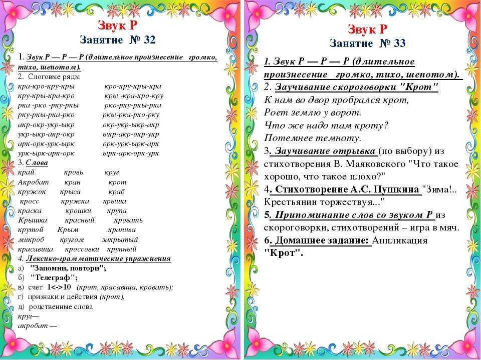Из множества стихов и песенок лучше выбирать насыщенные буквой Р.