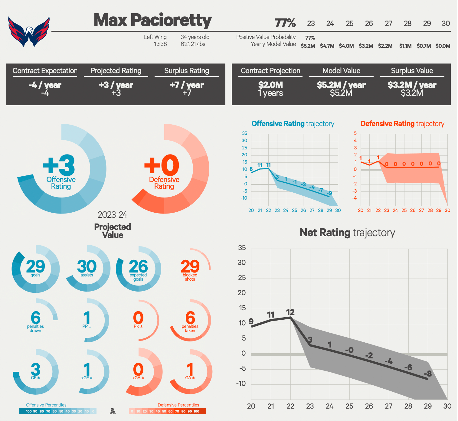 Even looking back to his 2021-22 season with the Vegas Golden Knights, Pacioretty posted really strong performances in possession metrics across the board. If Pacioretty can stay healthy, the Capitals just signed a bonafide goal scorer for their second line, and a left handed goal scorer for the power play.