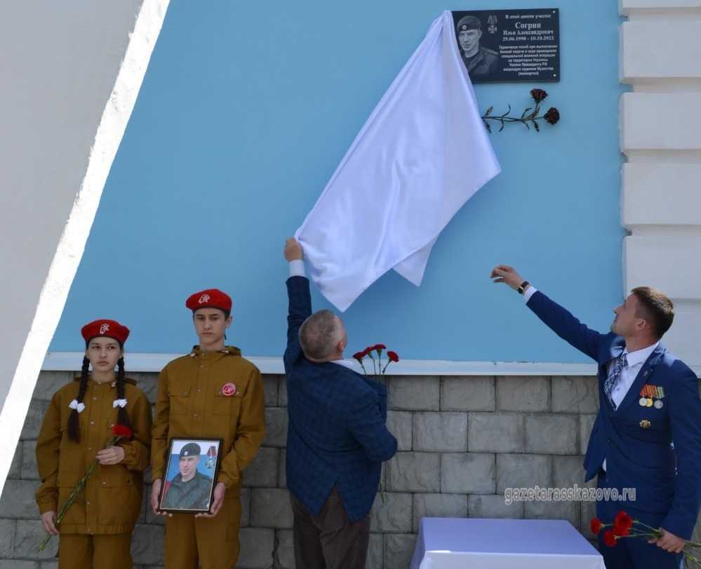 В День воинской славы, 18 апреля, в городе Рассказово открыли мемориальную доску в память о погибшем участнике спецоперации Илье Согрине. Её установили на здании первого корпуса школы № 4.