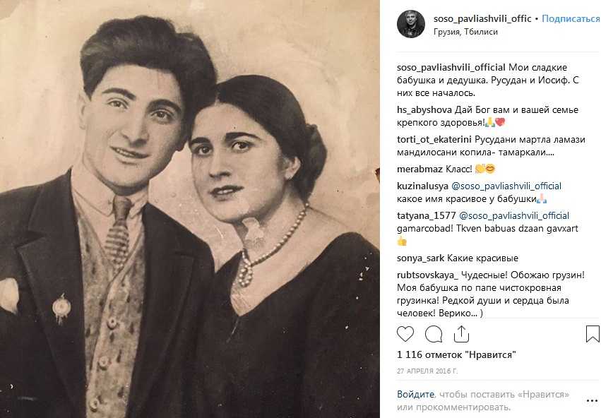 На фото дедушка и бабушка Сосо Павлиашвили https://www.instagram.com/soso_pavliashvili_official/