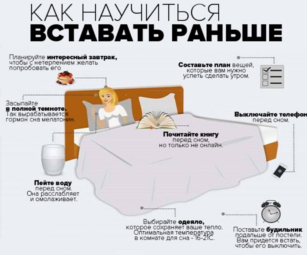 Для облегчения утреннего пробуждения также можете воспользоваться следующими рекомендациями.