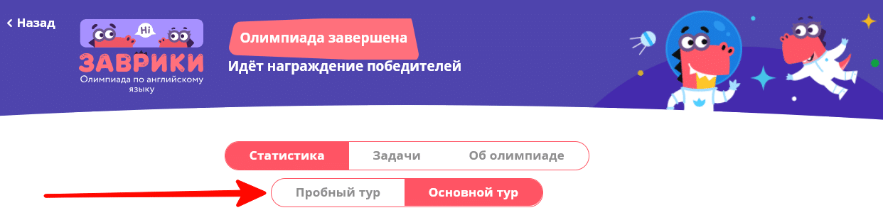 Запись ученика на основной тур олимпиады осуществляется учителем или родителями. В рамках подготовки к мероприятию ученик может подготовиться с помощью пробного тура в соответствующей вкладке. В личном кабинете учитель и родитель могут посмотреть успехи ребёнка.