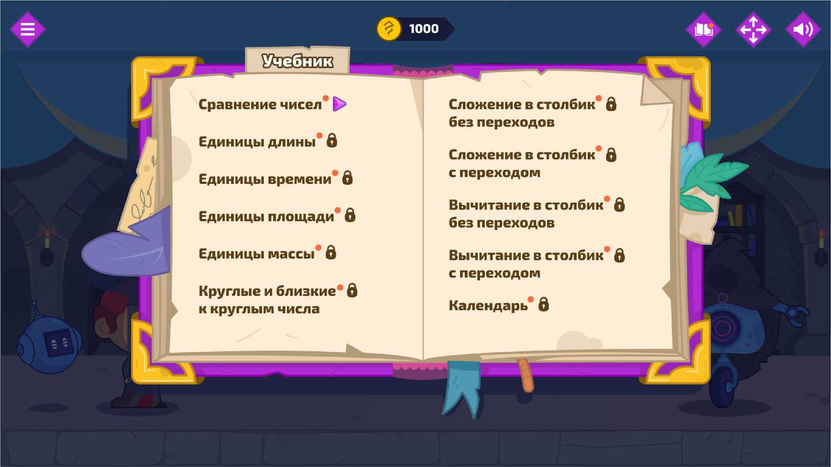 Все задания в игре «Магическая математика» соответствуют ФГОС и включают такие темы по математике, как сравнения чисел, единицы длины, времени, площади, массы, способы сложения и вычитания чисел в столбик, дроби, простые и составные числа, признаки делимости.