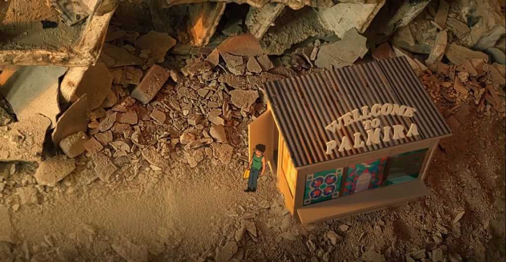 «То есть, все сцены с разрушенным городом, туристический киоск, в котором живут дети, разбомбленные дома, улицы, по которым идёт главный герой — все это реальные объекты, созданные вручную», — поясняет она.