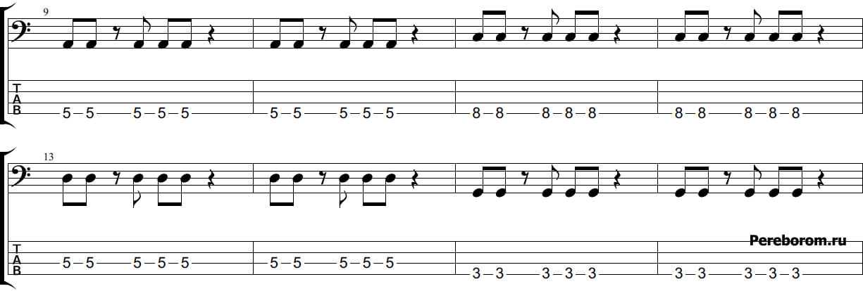 Табы партии баса и аудиофрагмент