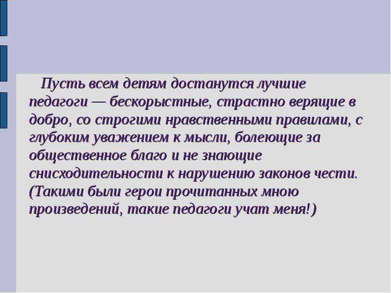 Образ учителя в русской литературе является одним из самых ярких и значимых. Учителя изображаются как высокие нравственные авторитеты, которые не только передают знания, но и воспитывают своих учеников. Они являются образцом для подражания и вдохновляют на достижение высоких целей.