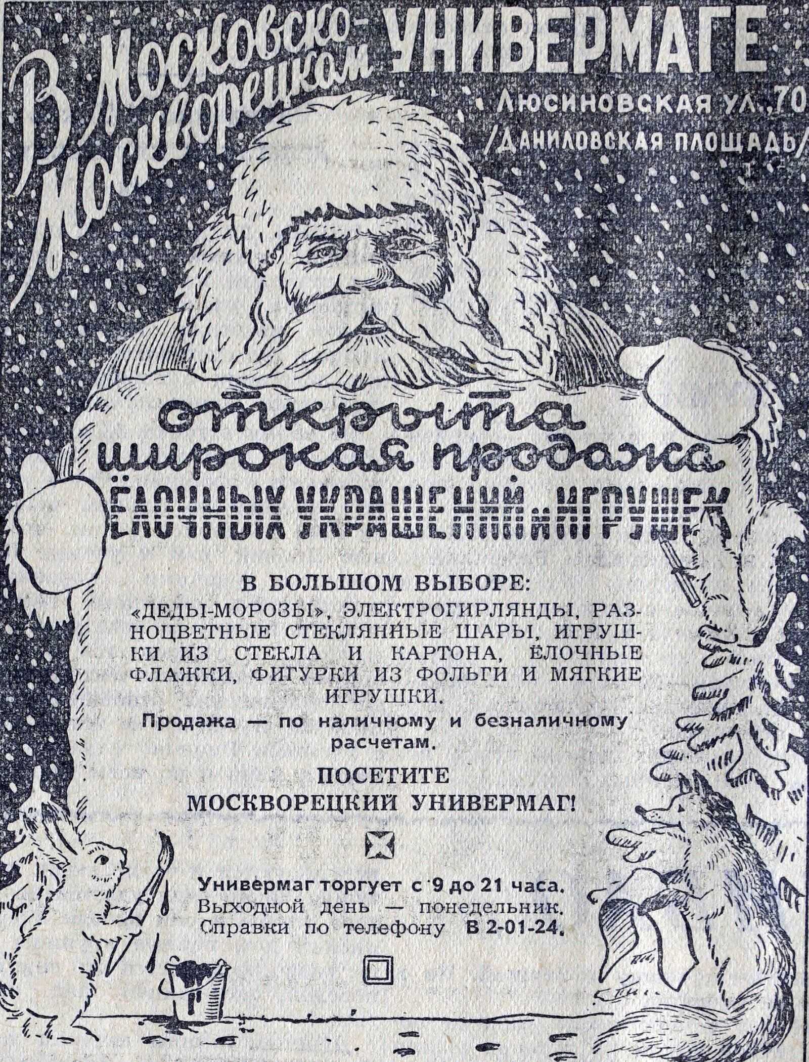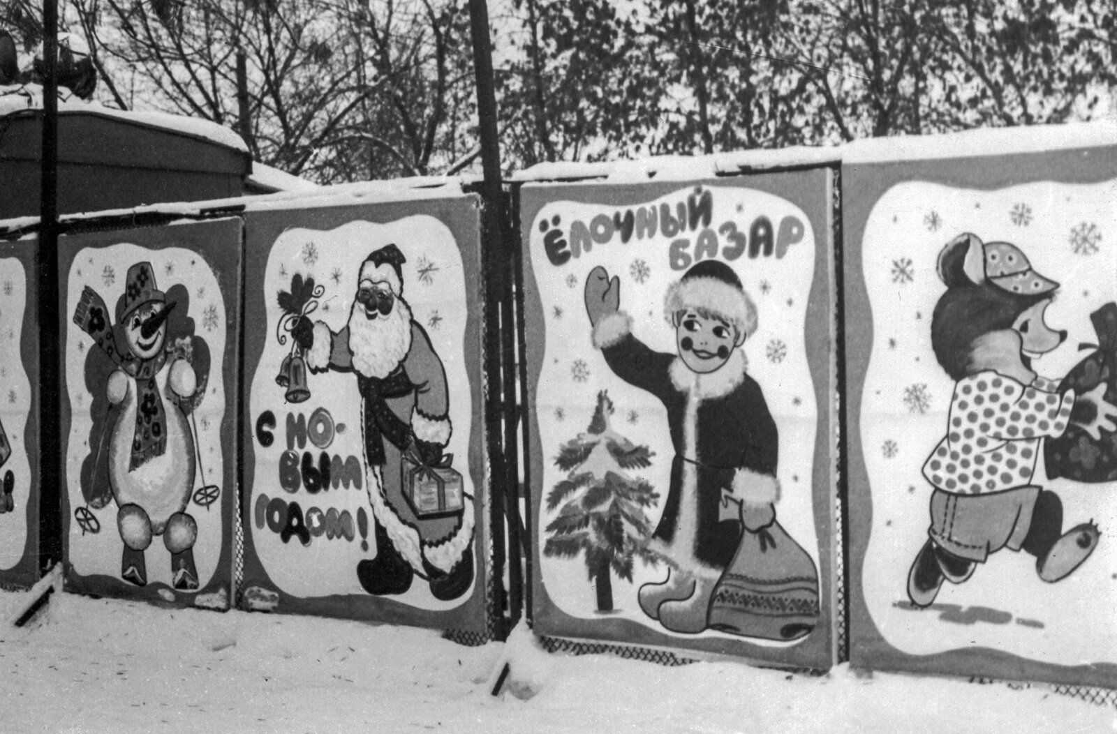 Много было работы местным художникам, расписывали витрины магазинов, писали новогодние транспаранты, которые сейчас именуют баннерами. В преддверии празднеств на городских площадях и парках устанавливались и украшались ёлки.